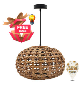 Compre hoje a sua lâmpada pendente de vime para lâmpada E27 e desfrute de uma iluminação natural e elegante em sua casa. O candeeiro NÃO inclui a lâmpada, para ver as nossas lâmpadas E27 clique no botão: