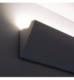 A Moldura de Poliestireno foi especialmente projetada para incorporar perfis de alumínio com tiras LED, oferecendo uma solução decorativa que transforma qualquer espaço com iluminação indireta e decorativa. Este produto permite criar efeitos espetaculares na decoração de interiores, adicionando não apenas luz, mas também elegância e dinamismo. Ao integrar perfis de iluminação no seu interior, esta moldura transforma tetos e paredes em verdadeiras obras de arte, integrando formas lineares com um suave brilho de luz.