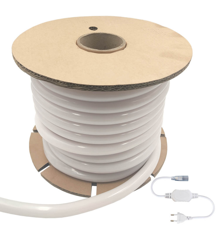 CIRCULAR 360º LED Neon spole levereras i 25 meter, den innehåller också likriktarkabeln, anslutningsstiftet och ändlocket. Färg vit (3000k-4000k-6000k).