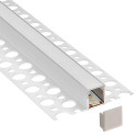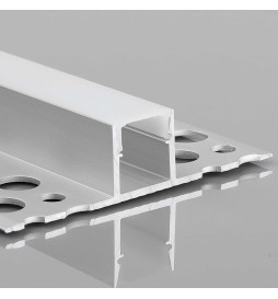 Arkitektonisk infälld aluminiumprofil för LED-remsor, utformad för en elegant och diskret installation mellan gips, gipsväggar eller kakel. Designen gör det möjligt att skapa kontinuerliga ljuslinjer utan synliga ramar, vilket ger en minimalistisk och sofistikerad finish till alla rum. De perforerade flikarna säkerställer ett stadigt fäste i byggmaterialet. Perfekt för modern, bländfri belysning. Inkluderar 4 ändlock.