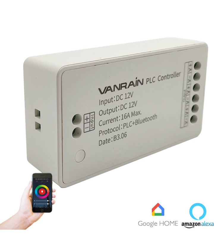 Vår styrenhet är utformad för användning både med vår fjärrkontroll och med TUYA-appen för Google Home och Alexa.