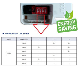 En av dess stora fördelar är multispänningsutgång: den kan leverera en konstant spänning inom ett område på 25 till 42V DC, och anpassar sig automatiskt till den anslutna belastningen. Detta innebär att drivdonet kan fungera med olika ströminställningar (från 500 till 750 mA), vilket gör en enda modell lämplig för olika applikationer. När den är ansluten till ström justerar systemet automatiskt utgången och upprätthåller en konstant spänning inom det specificerade området.