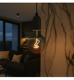 Den attraktiva, eleganta och moderna designen, som framhävs av ett omslutande glashölje, ger stil åt alla inredningsmiljöer. Upplev en ljusförvandling i dina utrymmen med denna unika glödlampa, som på ett mästerligt sätt kombinerar ljuseffektivitet och fängslande estetik.