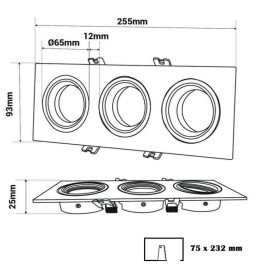 Denna ram är särskilt utformad för att rymma upp till tre GU10-lampor och dikroiska LED-moduler, som enkelt kan installeras och bytas ut tack vare den enkla och säkra fästmekanismen.