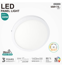 LED Takarmatur Yta Rund 30W | 4CCT | UGR19 | SMD2835 140Lm/W | CRI92