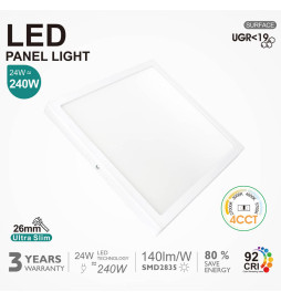 LED Takarmatur Yta Fyrkant 24W | 4CCT | UGR19 | SMD2835 140Lm/W | CRI92