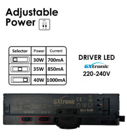 En av de mest framstående funktionerna hos denna strålkastare är dess innovativa GxTronic Driver, som levereras som standard med en effekt på 40W. Men här är magin: denna driver låter dig ta kontroll och manuellt programmera energiförbrukningen för den trefasiga projektorn. Behöver du en mjukare atmosfär? Eller föredrar du stark belysning för att framhäva dina utrymmen? Med LED-Skenstrålkastaren Roma kan du noggrant välja mellan 30W-35W-40W i effekt. På så sätt har du makten att anpassa ljusstyrkan efter dina behov samtidigt som du sparar energi och pengar i processen.