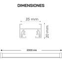 Denna skena, som är en krets, innebär att när lampan tänds tänds alla lampor direkt utan möjlighet att reglera dem. Denna produkt är kopplad till våra enfas LED-spotlight.