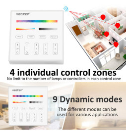 Kabeldragningen till denna kontroller är omedelbar och verktygsfri, vilket gör installationen och konfigurationen enkel. Dessutom har fjärrkontrollen en räckvidd på upp till 30 meter, vilket ger dig friheten att justera belysningen från var som helst inom detta område.