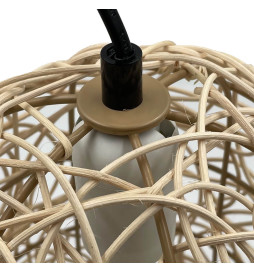Lampan är tillverkad av korgmaterial av hög kvalitet, med en naturlig finish som ger den en varm och mysig look. Upphängningskabeln är justerbar så att du kan anpassa lampans höjd upp till 120 cm.