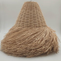 Lampan är tillverkad av rotang, ett naturligt material bestående av tunna skikt av klätterpalmer, vanligtvis från Asien, som är flätade för att bilda en unik och distinkt struktur. Denna byggteknik förbättrar inte bara dess estetiska utseende utan ger också exceptionell hållbarhet.