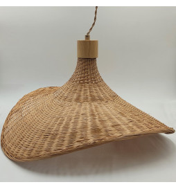 Lampan är tillverkad av bambu, ett material som är ganska flexibelt och hållbart, vanligtvis från Asien, och som är vävt för att bilda en unik och distinkt struktur. Denna byggteknik förbättrar inte bara den estetiska framträdanden utan ger också en exceptionell hållbarhet.