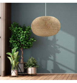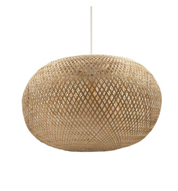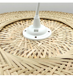 Lampan är tillverkad av bambu, ett material som är ganska flexibelt och hållbart, vanligtvis från Asien, och som är vävt för att bilda en unik och distinkt struktur. Denna byggteknik förbättrar inte bara den estetiska framträdanden utan ger också en exceptionell hållbarhet.