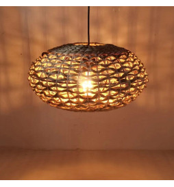 Material av hög kvalitet: Tillverkad med fina rottingsträngar, erbjuder denna lampa inte bara ett unikt estetiskt utseende utan säkerställer också hållbarhet och styrka. Rotting, känt för sin flexibilitet och styrka, ger en solid struktur som samtidigt tillåter en lätt ljusspridning och skapar en mjuk och avslappnande atmosfär.