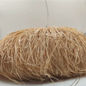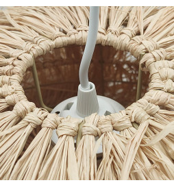 Lampan är tillverkad av rafia, en naturlig fibertråd eller snöre från en palmart som kommer från Afrika och tropiska Amerika, vävd för att skapa en unik och distinkt struktur. Denna byggteknik förbättrar inte bara lampans estetiska utseende utan ger också en exceptionell hållbarhet.
