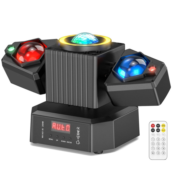• Inbyggd magisk boll som projicerar roterande flerfärgade strålar – perfekt för dansgolv och livliga miljöer