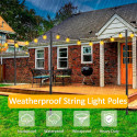 Packet med 2 aluminiumstativ är den perfekta lösningen för att belysa utomhusområden med girlander på ett säkert och mångsidigt sätt. De är tillverkade av svart aluminium, har en justerbar höjd på upp till 2,4 meter och har två utbytbara baser: en spikbas för spikning i trädgårdar eller mjuk mark och en platt bas för fasta ytor som terrasser eller trottoarer. Dessutom har de två fästmetoder som gör det möjligt att hänga upp en eller två kransar, beroende på behov.