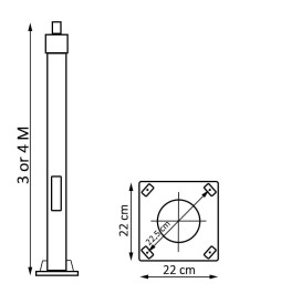 Omedelbar service: Kolumn, mast, stång för gatubelysning, bostadsområden, vägar, bostadsområden. Tillverkad av galvaniserad stålrör Ø76mm, med en tjocklek på 2mm i diameter, målad i texturerad svart - RAL9005 - av högsta kvalitet polyester för stor hårdhet och motståndskraft. Enkel transport och montering, kan monteras i 3 eller 4 delar, vilket gör installationen mycket lättare för en person.